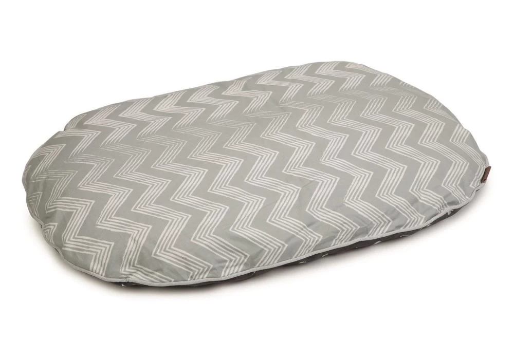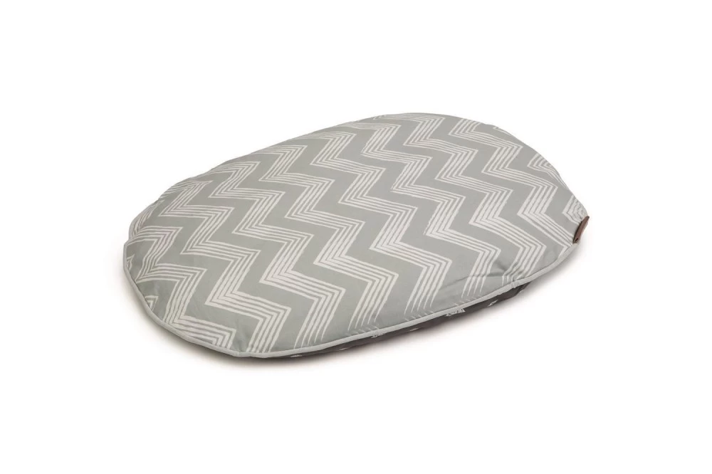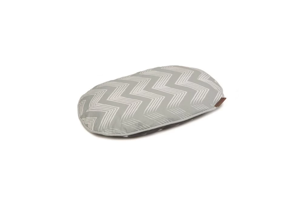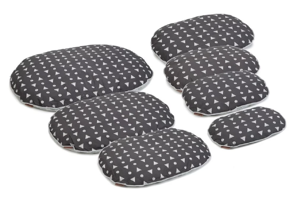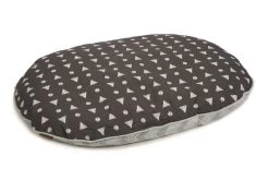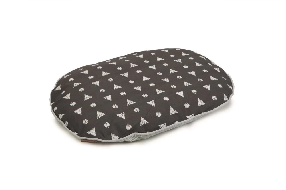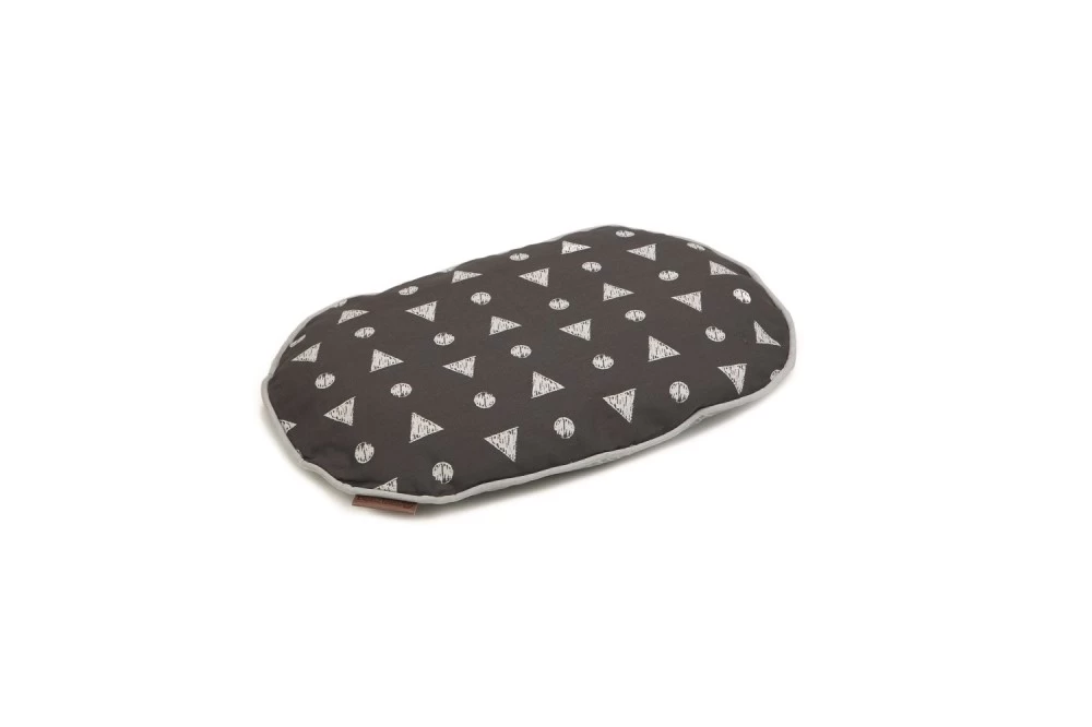 Ein Kissen, das in jeder Wohnung beeindruckt! Das Beeztees Liegekissen Trufo ist ein weiches, ovales Kissen, dass sich auch sehr gut als Einlage in einem Hundekorb eignet. Das Kissen ist auf der einen Seite mit einem wellenförmigen Muster (grau), auf der anderen Seite mit einem Design aus Kreisen und Dreiecken (anthrazit) dekoriert. Das Kissen kann in der Waschmaschine bei 30°C gewaschen werden.