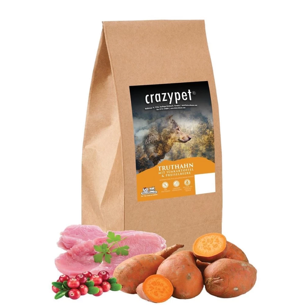 CRAZYPET® Trockenfutter TRUTHAHN mit Süßkartoffel getreidefrei für Hunde