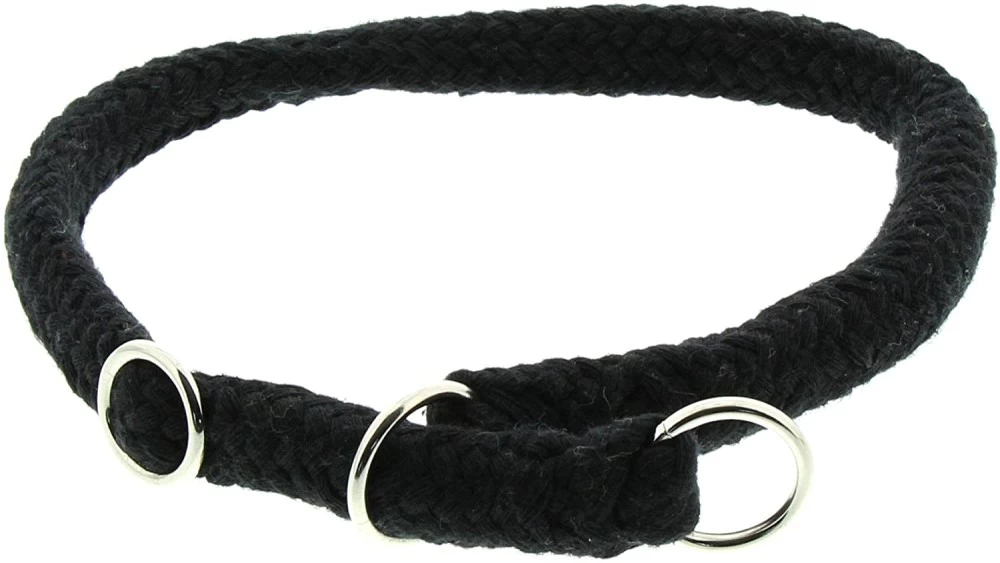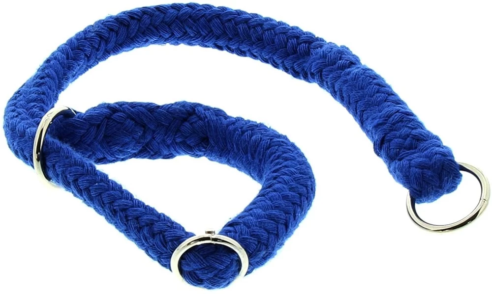 Hunde-Halsband / Stoppwürger aus Baumwolle in Flechtoptik für alle Hunderassen bis max. 60cm Halsdurchmesser, Optimal geeignet als Erziehungs-Methode bei stark ziehenden Hunden oder zum Trainieren. Stopp-Messingring verstellbar. Optimale und sichere Befestigung an Hundeleine möglich. Kein Einschneiden oder Scheuern dank hochwertigem Verarbeitung ohne Nähte, weiches und warmes Material durch leichte, natürliche Baumwolle in Flechtoptik. Hohe Langlebigkeit, Maschinenwaschbar bis zu 30 Grad.