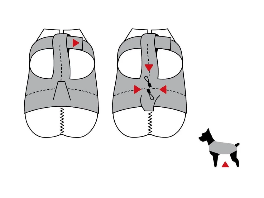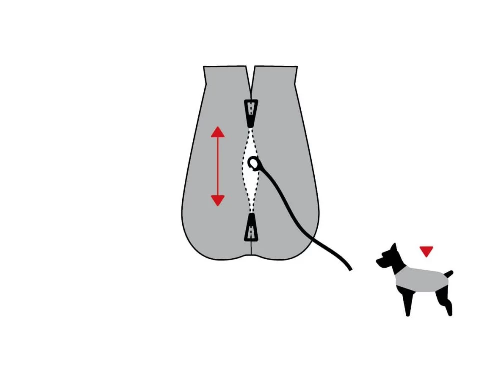 Das „Flexible-System“ arbeitet mit verschiedenen Möglichkeiten Hunden unsere Jacken optimal anzupassen. Einmal-Einstellungen am Hals, Brust und Bauchbereich durch Klett und Tunnelzüge sind durchdacht in das Design eingearbeitet. Der hochwertige Doppel-Reißverschluss am Rücken gewährleistet sicheren Halt und schnelles An- und Ausziehen.