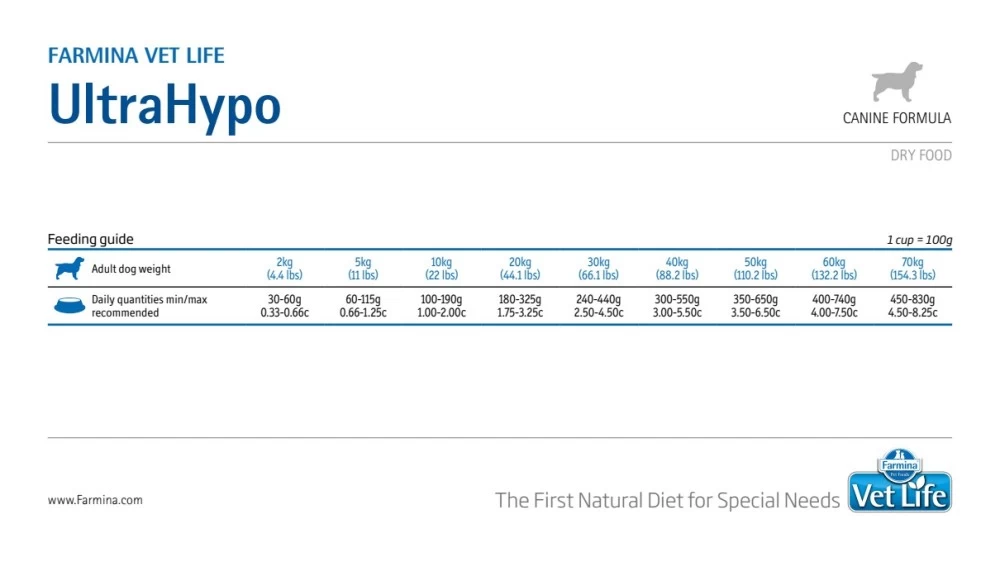 Bei allergischen Reaktionen und Atopien (erbliche Überempfindlichkeit). Farmina Vet Life UltraHypo ist eine diätetisches Futtermittel für ausgewachsene Hunde, um Futtermittelallergien und Futtermittelintoleranzen zu reduzieren. Es wird als diagnostisches Mittel (Ausschlussdiät) genutzt. Besonders geeignet auch zur refraktären Behandlung von atopischer Dermatitis und rezidivierenden Durchfällen.