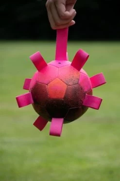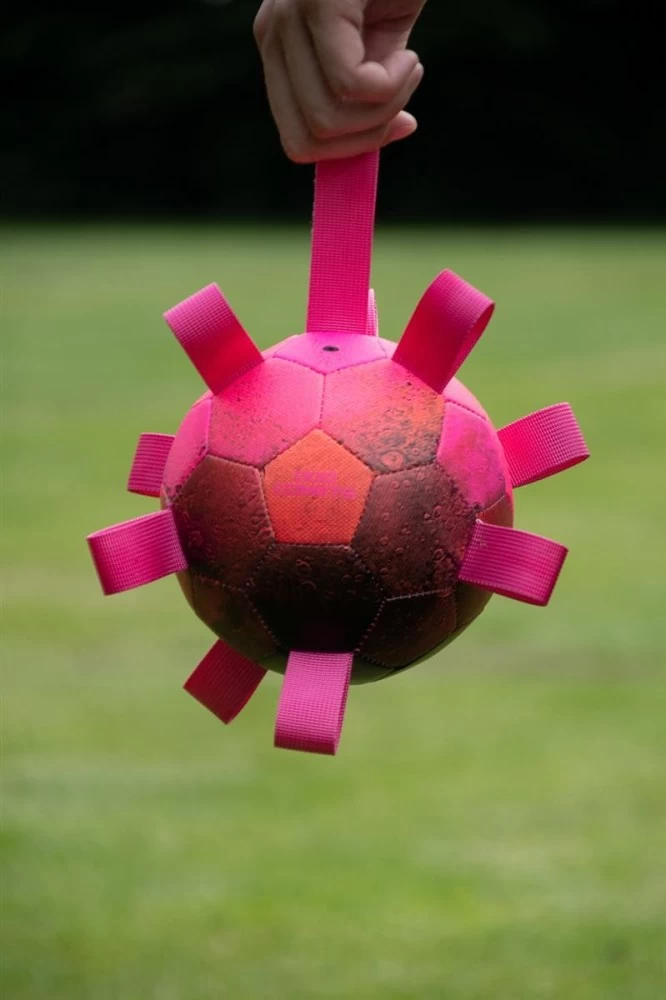 Dieser hochwertige Ball besteht aus drei Schichten und ist daher extrem stark. Der innere Anti-Leck-Ball ist aus Kautschuk, umgeben von einer Baumwollschicht und die AuĂenseite ist aus PU-Material gefertigt. Dies macht den Ball weich, langlebig und lĂ€sst ihn gut springen. Sicher fĂŒr die ZĂ€hne des Hundes und durch die Schlaufen perfekt zum Aufnehmen und Wegwerfen. Der Ball wird einfach mit der mitgelieferten Pumpe aufgepumpt.