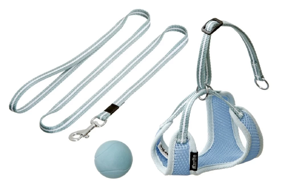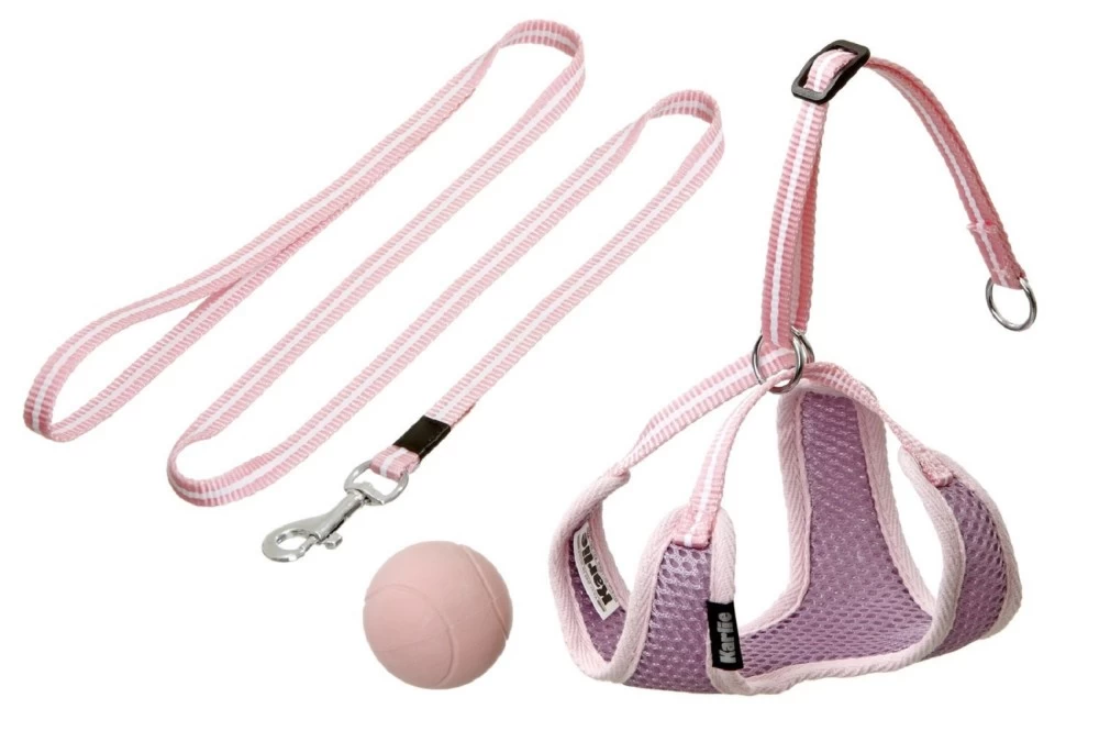KARLIE FLAMINGO Brustgeschirr WELPENGESCHIRR und LEINE mit BALL fĂĽr kleine Hunde