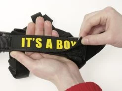 welche einfach mit Klettverschluss an diesem Geschirr befestigt werden und bei Bedarf