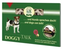Dieses Doggy Talk Geschirr ist fĂĽr die Verwendung von Doggy Talk Slogans ausgelegt,