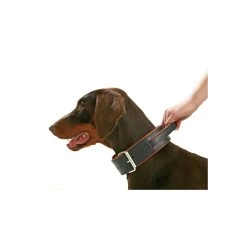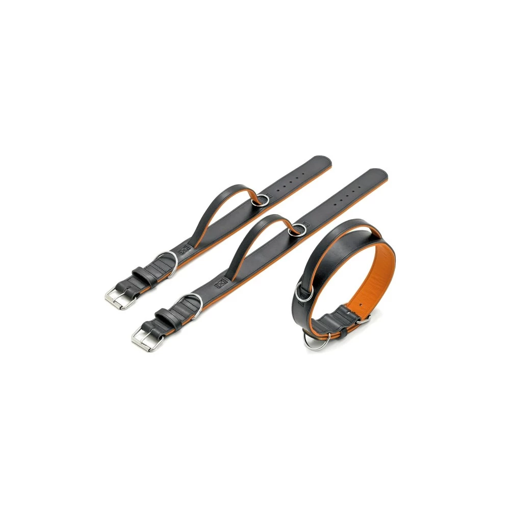 FĂŒr den groĂen Hund! Ein breites, mit cognacfarbigem Softleder unterfĂŒttertes Halsband. Durch die eingearbeitete Handschlaufe haben Sie Ihren Hund direkt unter Kontrolle. NatĂŒrlich ist auch der Einsatz eines KurzfĂŒhrers oder einer Leine möglich. Das super weiche, schwarze Vollrindleder ist handwerklich vernĂ€ht und durch den Einsatz stabiler, verchromter BeschlĂ€ge hat dieses Luxushalsband eine lange Lebensdauer.