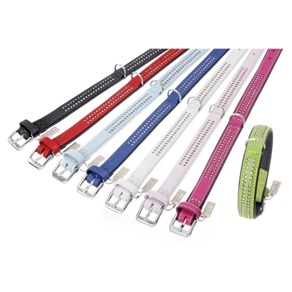 KARLIE Lederhalsband VINTAGE HALSBAND KIWI zweireihiger Straßbesatz für Hunde