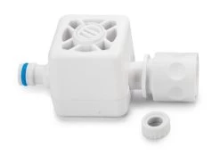 Die Höhe des Wasserstrahls kann mit den beiden austauschbaren Wasserdüsen eingestellt werden. Ein Wasserdruckregler ist im Lieferumfang enthalten. Dieser kann zum Einsatz kommen, wenn der Wasserdruck des angeschlossenen Gartenschlauchs nicht ausreichend ist, um das Hundespielzeug Splashy zu betreiben. Mit Hilfe des Wasserdruckreglers kann durch einfaches Drehen die Wasserzufuhr zum Wasserspender reguliert werden.