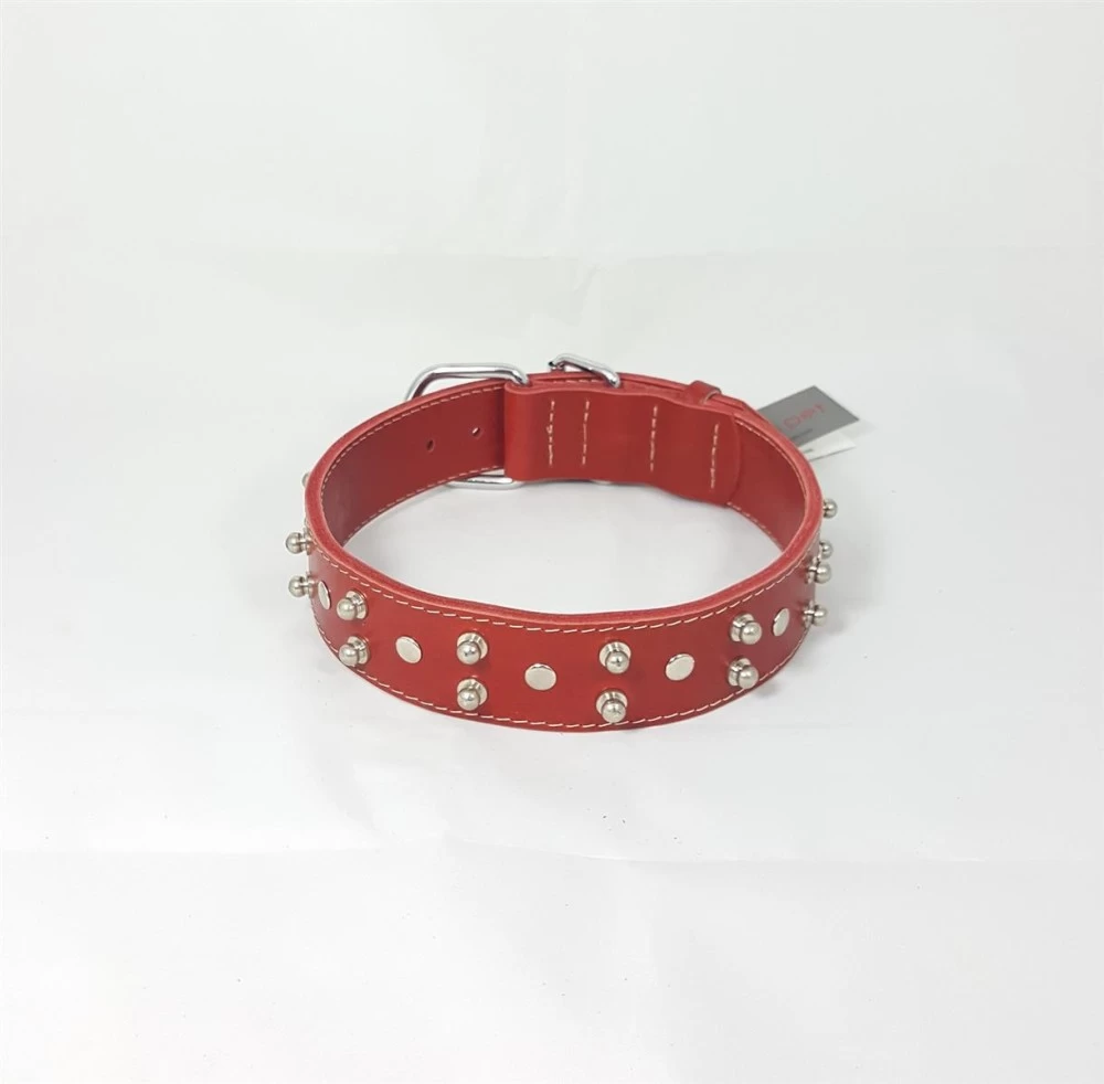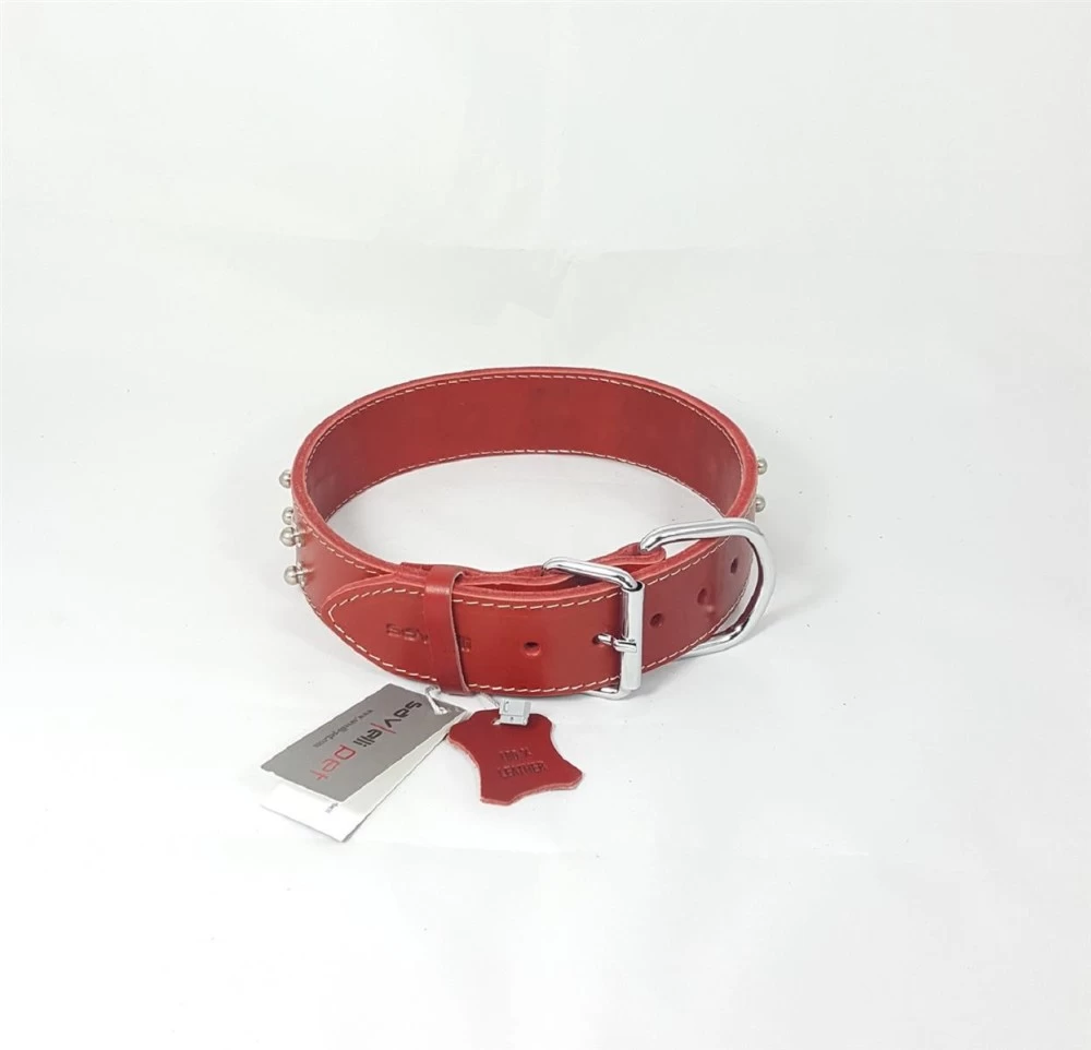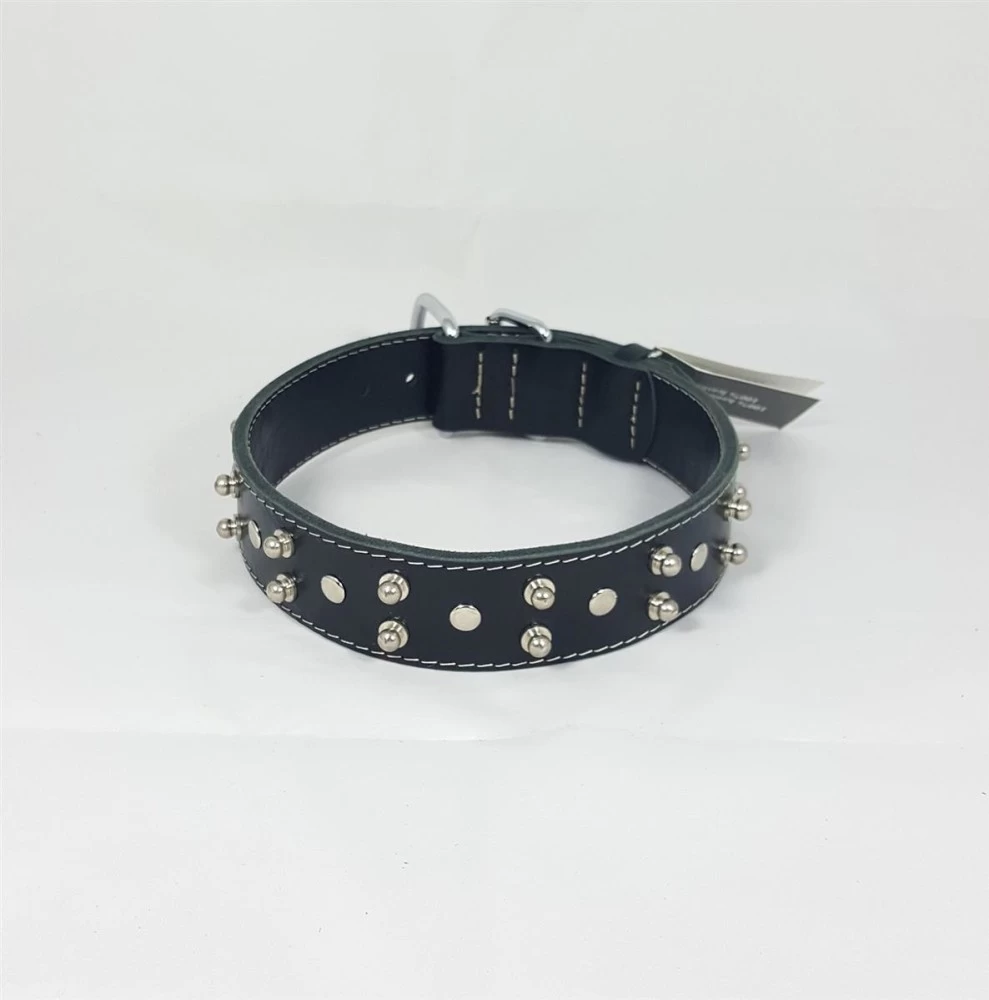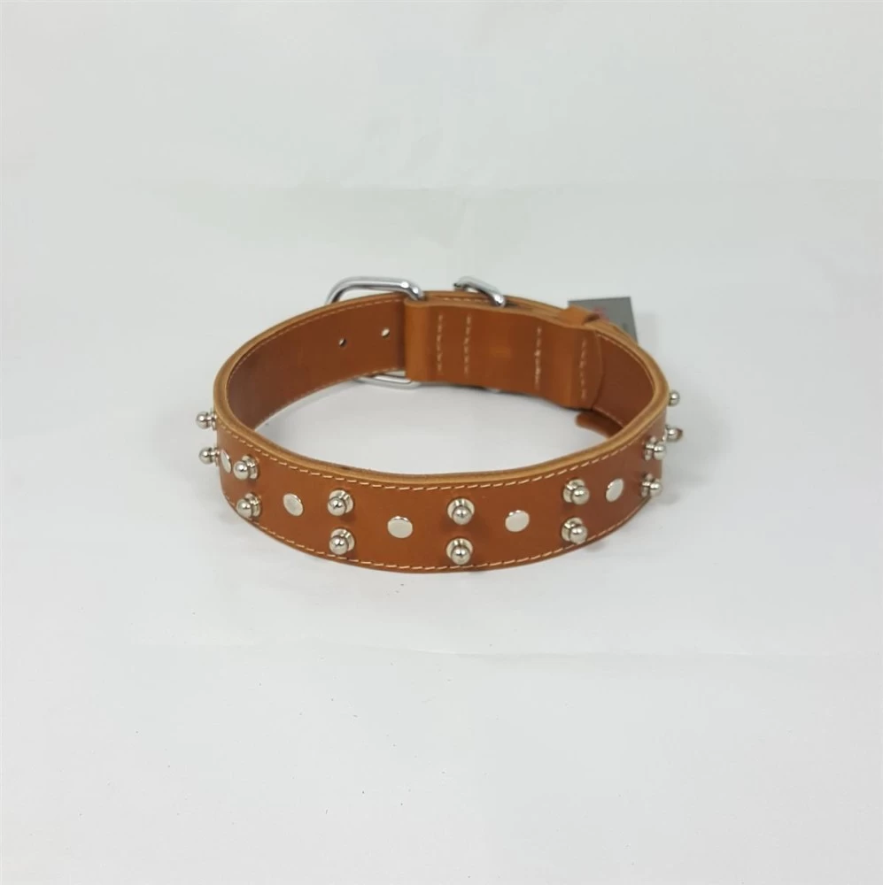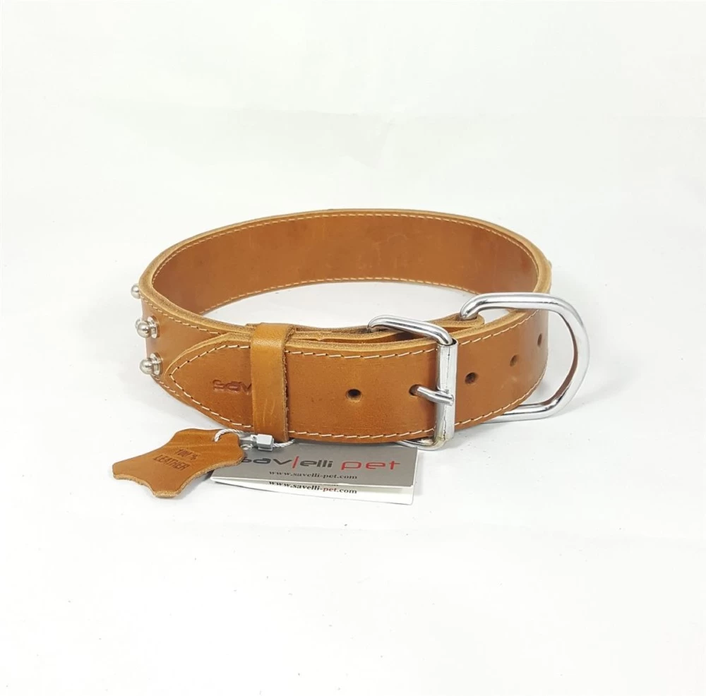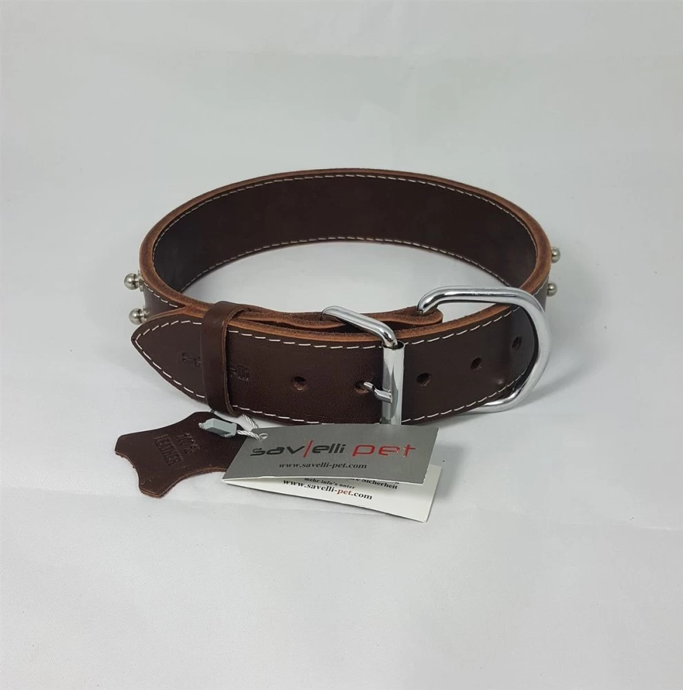 Savelli-Pet Halsband Echtleder abgerundete Nieten 39,5cm – 48,5cm für Hunde