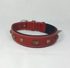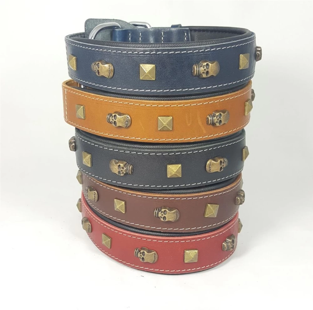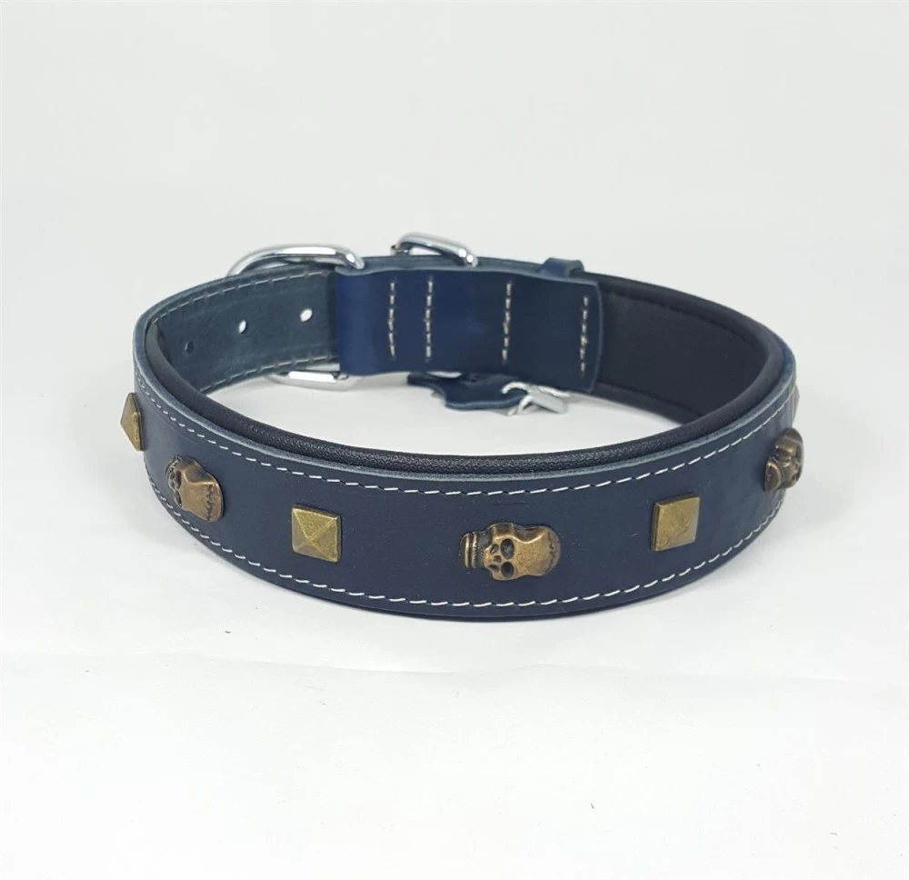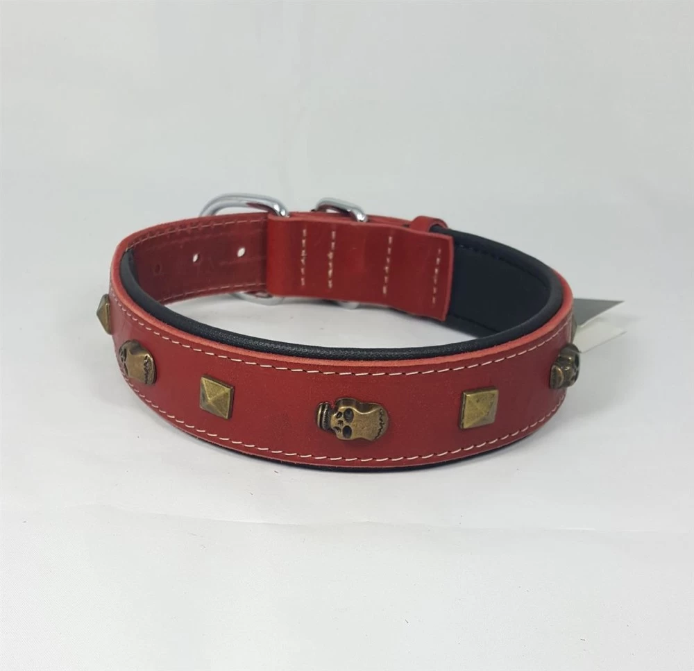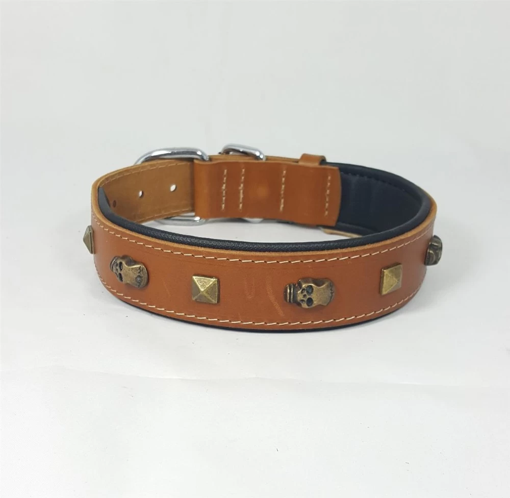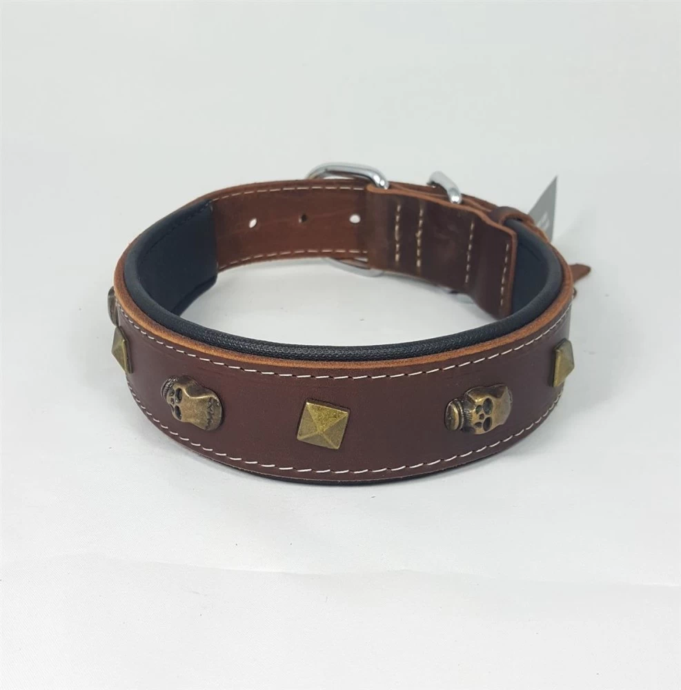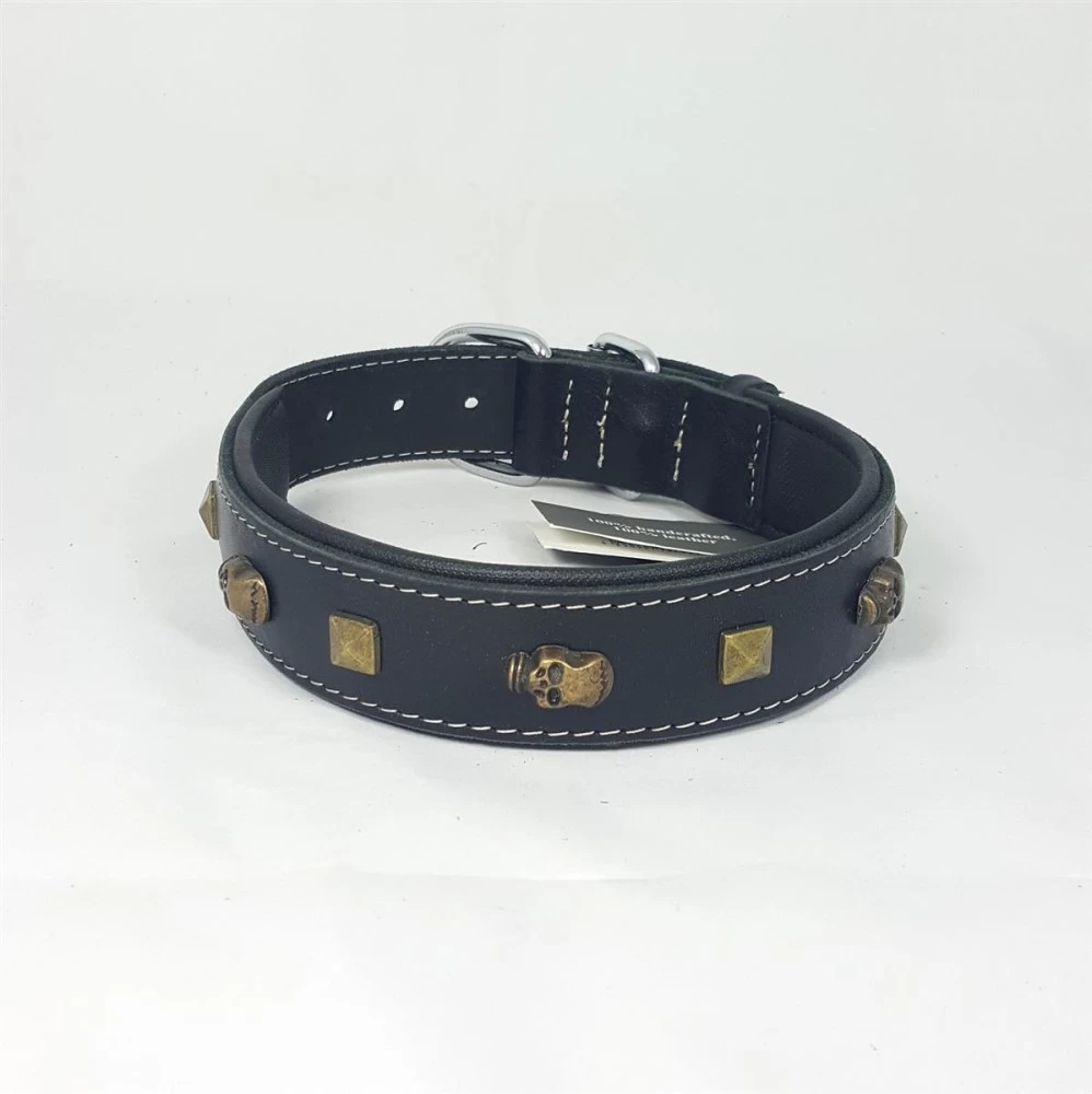 Savelli-Pet Halsband Echtleder Nieten Totenkopf Softpad ca.36 – 46cm fĂĽr Hunde