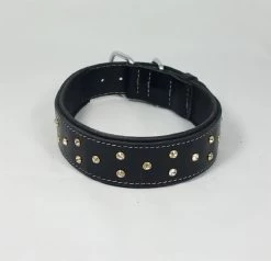Savelli-Pet Halsband Echtleder Softpad Swarovski Steinen ca.41 – 51cm für Hunde