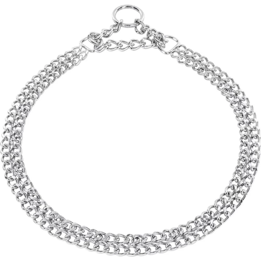 SPRENGER Erziehung DOPPELHALSKETTE 2 mm 60cm verchromt mit Stop fĂŒr Hunde