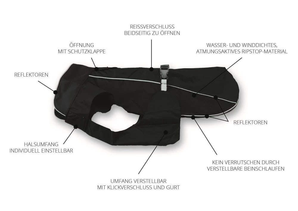 TRILUS Wintermantel JEGGO WINTERCOAT BuMo breiter Schnitt schwarz/grau fĂŒr Hunde