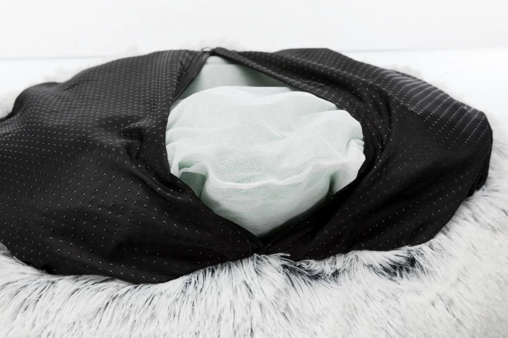 Dieses Kuschelbett ist in weiß-pink mit 50cm Durchmesser und in weiß-schwarz mit 50cm und 60cm Durchmesser erhältlich!
