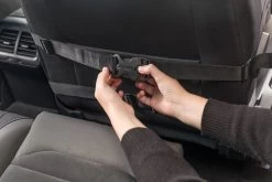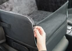 Hinweis: Für einen umfassenden Unfallschutz nutzen Sie ein geprüftes Auto-Sicherheitsgeschirr. Diese Befestigung biete dem Tier sowie den Insassen keine Sicherheit, sondern schützt nur vor dem Umkippen bzw. Verrutschen. Hunde sollten daher während der Fahrt immer mit einem Sicherheitsgeschirr für Hunde, welches durch die Gurtdurchführung am Autoschnaller befestigt wird, angeschnallt werden.